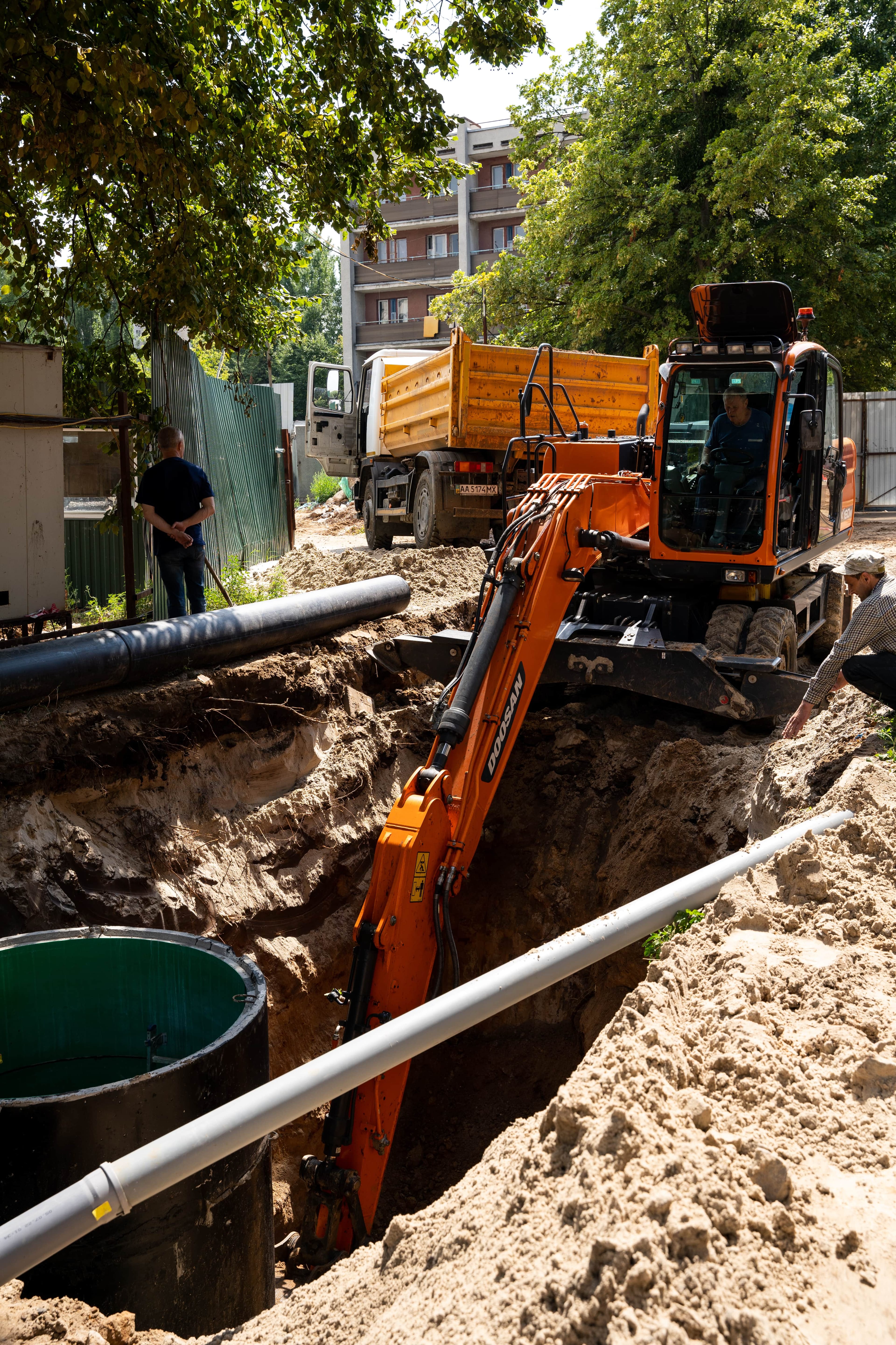 - Виконуються роботи по влаштуванню зовнішніх мереж комплексу.