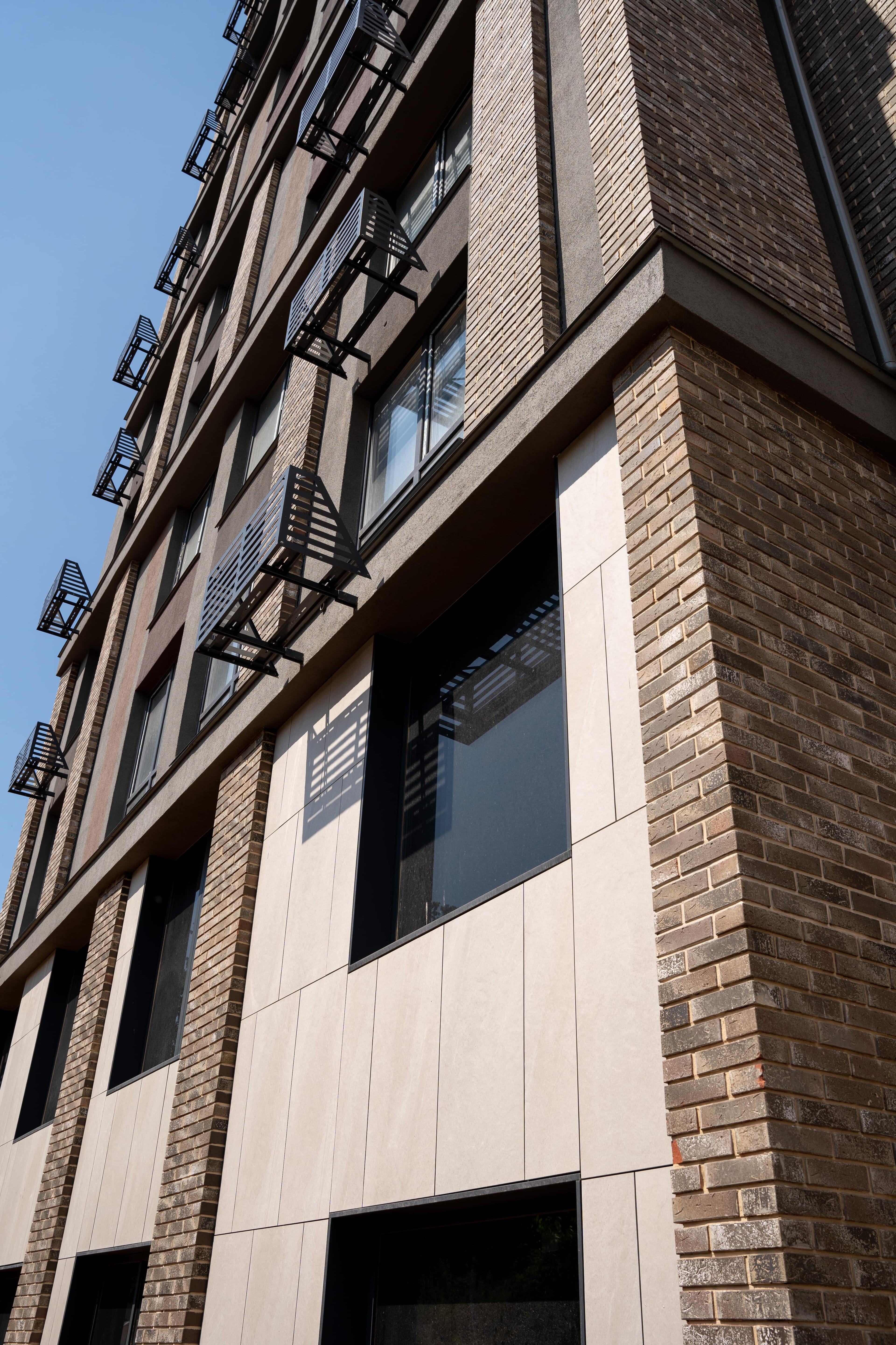 - Завершено роботи влаштування вентильованого фасаду на двох секціях.
