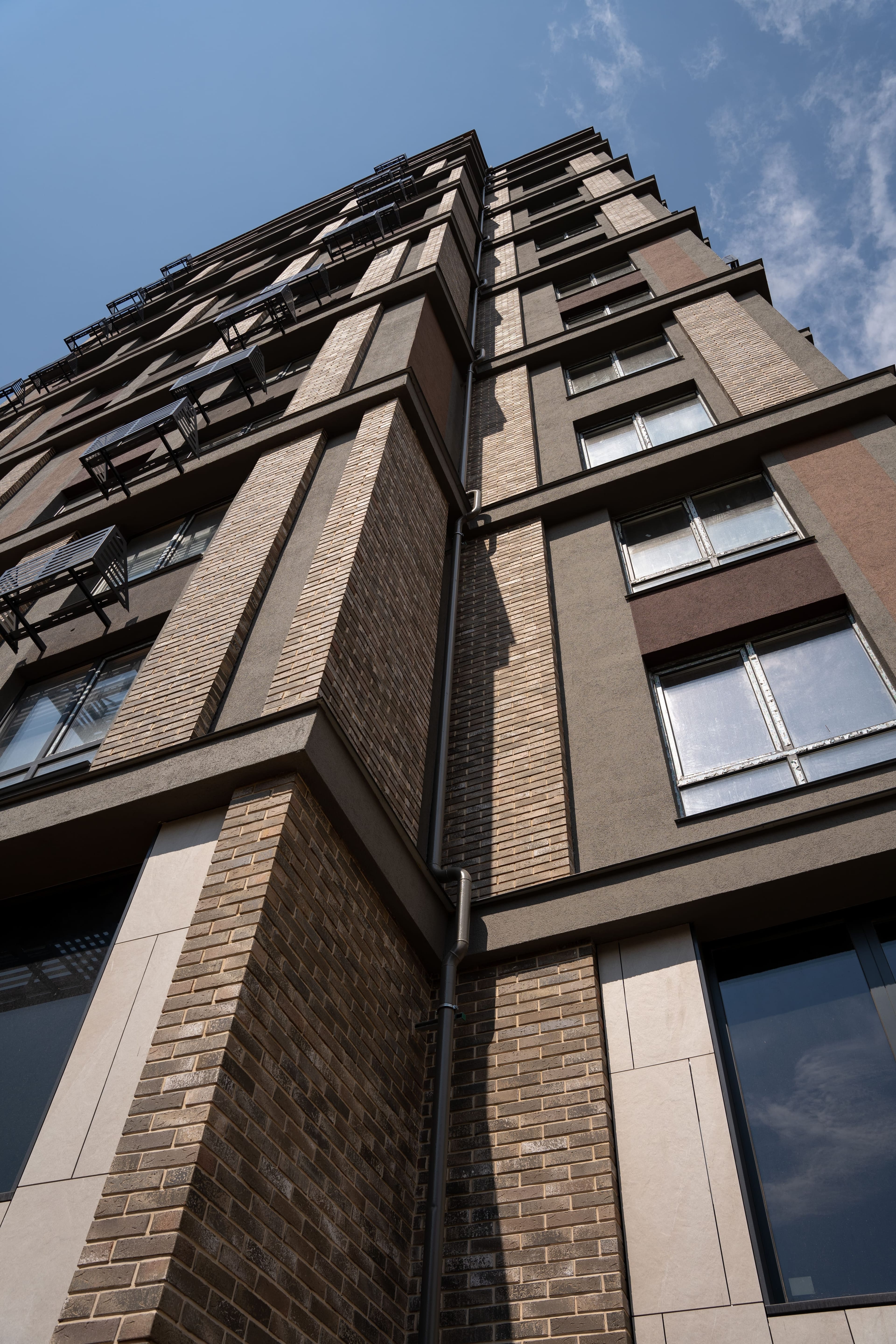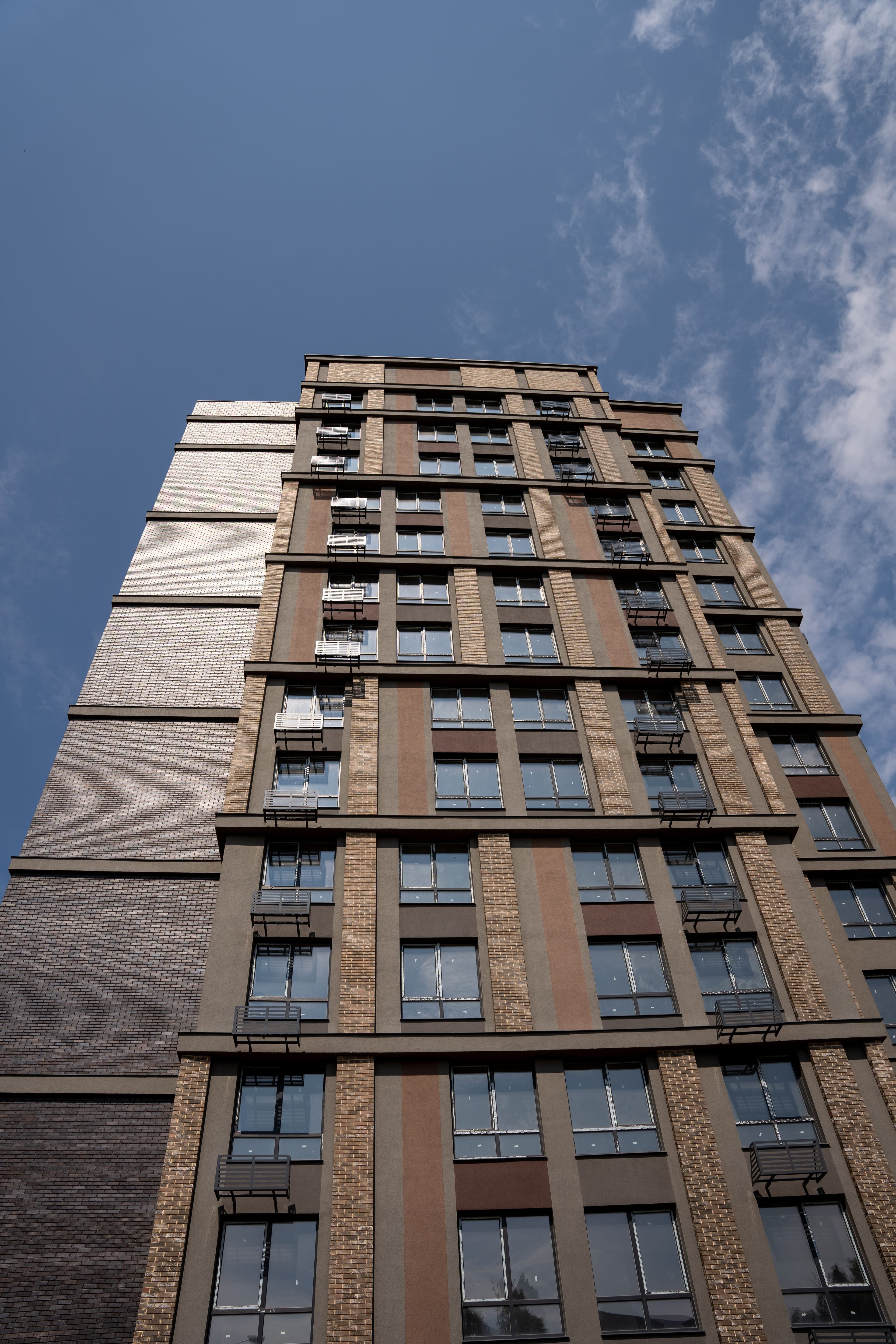 - Виконано монолітні роботи в повному обсязі, влаштування покрівлі, завершені кладочні роботи, зовнішніх, міжквартирних і міжкімнатних стін.